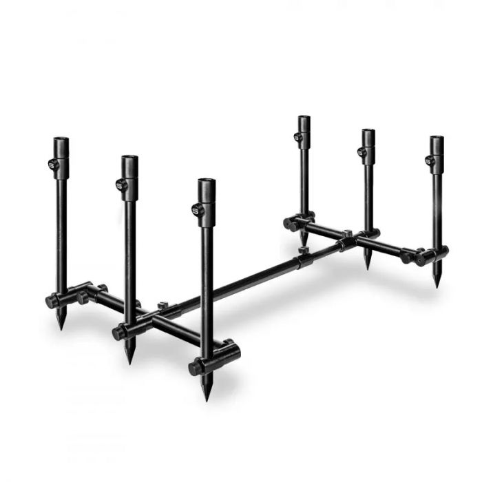 Secondly, those banksticks can be secured into a base bar to give you perfectly parallel, 3 rod front and back units which drive into the ground with one adjustable pin to provide a totally flexible 3 rod set up.