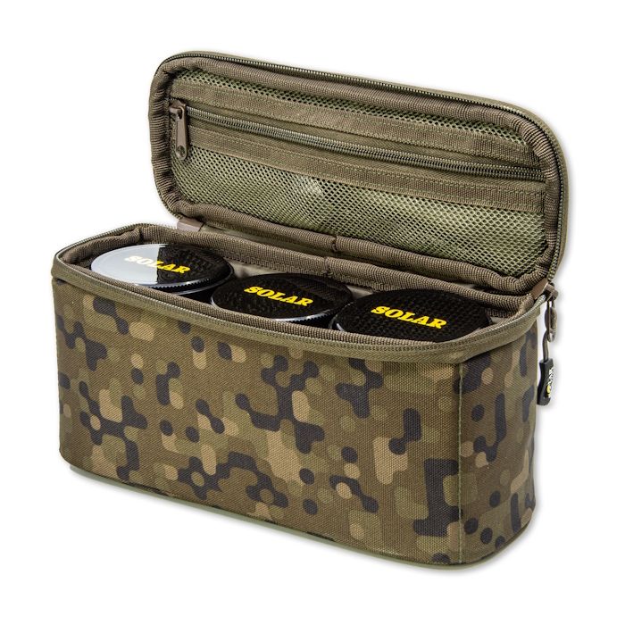 Brew Bag and Brew Bag XL – two premium, purpose-built storage solutions designed to keep your bankside brew kit organised and protected, ensuring you can enjoy your perfect cup of tea or coffee no matter where you are. Both bags feature Solar’s G-Tex highperformance, water-resistant, recycled fabric, ensuring your brew kit stays dry and protected from the elements. The Vertabr8 rigid construction provides superior protection for all your essentials, while the durable waterproof base ensures your gear stays dry, even on wet or damp ground. Each bag is equipped with a strengthened carry handle and heavy-duty double zip for easy transport and secure closure. The Standard Brew Bag (26 x 10 x 13 cm) is designed to store your essential bankside brewing kit, including 2 cups, 3 brew stash pots, and a teaspoon. Inside, the lid features a mesh storage pocket for added convenience. Whether you are fishing, camping, or relaxing outdoors, this compact bag keeps everything you need for a great brew at hand. For those who require more storage, the Brew Bag XL (42 x 20 x 16 cm) offers enhanced capacity and customizable storage with adjustable dividers. This larger version provides ample space for stoves, gas bottles, and a kettle, in addition to your cups, brew pots, and accessories. The lid features a large mesh storage pocket, perfect for keeping smaller items organised and easily accessible. Both versions come finished in Solar-Cam Camo, blending seamlessly into the outdoor environment while offering a rugged and stylish solution to keep your brew kit safe and organised. Whether you go for the compact Brew Bag or the spacious Brew Bag XL, you will always have everything you need to enjoy a hot drink by the water. · Utilises Solar’s G-Tex high performance, Water-resistant, Recycled fabric · Vertabr8 rigid construction, Providing superior protection · Purpose-built storage for bankside brew kit · Supplied with 2 cups, 3 brew stash pots and teaspoon · Lid interior, features a mesh storage pocket · Durable, Waterproof base · Strengthened carry handle · Heavy-duty double zip · Solar-Cam Camo finish · Dimensions- 26 x 10 x 13 cm