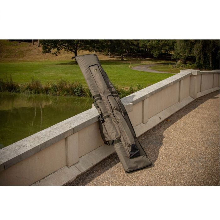There are two versions available, a 12ft version that accomodates 3 made-up rods and 3 spare rods and a 13ft version that accomodates 4 made-up rods and 4 spare rods. Big-pit reels and 50mm butt rings will fit. An internal padded divider and Velcro rod straps give great protection, and the carry handles and padded, adjustable shoulder strap makes the holdall easy to transport.