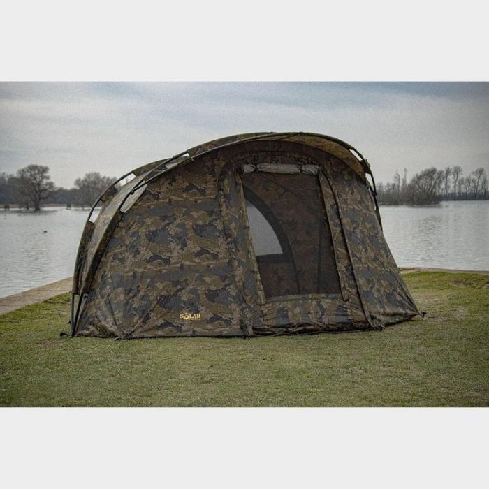 The Solar Tackle Undercover Camo Twin Rib Bivvy features a peak, multiple door options and a heavy-duty groundsheet for the ultimate bivvy experience. It has been designed with a two-pole pram-hood which makes for a very stable shelter that is easy to put up and take down.