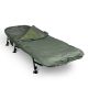 The bedchair is constructed using steel and aluminium for the frame with a 100 per cent flat profile. The legs are spread offering a low profile and each leg has a short foot section for extra strength and security. The feet are adjustable via the Grip-Lok™ leg mechanism, allowing for easy and secure height adjustment. The legs are also strengthened double tube legs, which all have large swivel mud feet. The twin folded hinges give the bed a completely flat profile and allow enough room for the sleep system to fold up more compactly. All bolts, washers and fixings are of stainless-steel construction, adding lightness and strength. Lastly, there are two convenient side storage pockets for a phone or car keys.