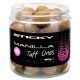 Designed to replicate the Manilla Boilies, these toughened hookbaits are made using the same base-mix as the normal bottom baits, but with the inclusion of extra binders. As you may have noticed, Manilla boilies straight from the bag are extremely soluble and break down very quickly, meaning they can only be used as a hookbait for a short period of time – enter the Manilla Tuff Ones. We have no intention of “fixing” the baits straight from the bag, as their extremely soluble nature is in our eyes what makes our baits so effective in the first place!