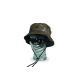 This Camfleck pattern cotton twill bucket hat features an olive lining, with a felt rubber badge on the front and a black chin string with leather adjuster.