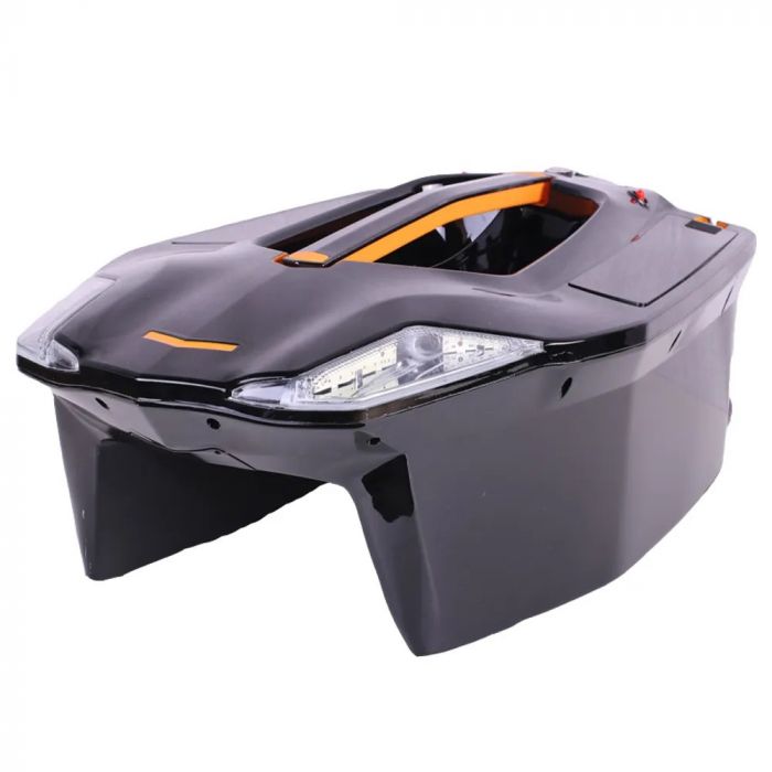 The X Boat stands out as the world's first smart bait boat, combining cutting-edge technology with an elegant design. The streamlined shape seamlessly integrates the handle into the body, creating a sleek and stylish low-profile aesthetic while ensuring a robust and stable hull. The smart features include powerful variable brightness main beam lighting on the front headlights, complemented by small white LED strip lights and a bright rear red multi-LED tail light. All these lights are independently switchable via the remote control, providing visibility at range even in low-light conditions. Furthermore, the tail light features a battery level indicator, blinking slowly when the battery is below 30%, with the blinking speed corresponding to the battery level.