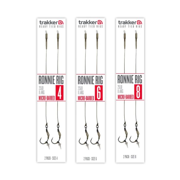 Without a doubt one of the most effective modern carp rigs, the Ronnie Rig has earned its reputation! Superior hooking mechanics and near-perfect for pop-up presentations, this ready-tied version using only premium components from the Trakker terminal range will put more fish on the bank for you. Ready to use straight out of the pack. At the core of this rig is a razor-sharp Clinga SP hook, paired with a Ronnie Swivel Size 11. This combination allows the hook to freely rotate and instantly react when a fish inhales, dramatically increasing the hooking ratio. The Supa-Grip Hook Bead and Medium Hook Rigger secure everything in place, maintaining the aggressive hooking angle that makes this rig so deadly. Constructed using 25lb Semi-Stiff Coated Braid, the rig provides the perfect balance of rigidity and flexibility, keeping the hook in an optimal position while allowing enough movement for a natural bait presentation. The Small Anti-Tangle Sleeve ensures the rig sits correctly on the lakebed after casting, reducing tangles. A Plastic Bait Screw replaces the need for floss or bait stops, allowing quick and secure attachment of pop-ups while ensuring they sit perfectly above the hook. Whether fished over silt, gravel, or a light scattering of bait, the Ronnie Rig presents the hookbait in a way that remains highly attractive and accessible to feeding carp. Available in a range of hook sizes, Micro Barbed and Barbless to suit different fishing situations. Supplied in pack of two.