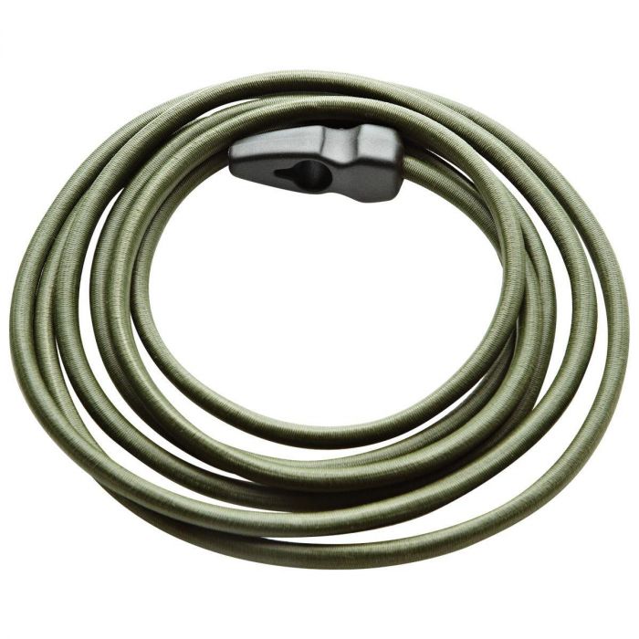 Rugged elastic strap for SECURING fishing gear during transportation.