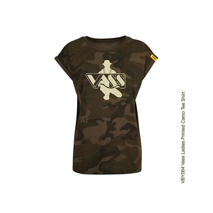 It's not just the camouflage print that make theVass Ladies camo tee an attractive choice. Many other cool details, such as the slightly longer back seam, the wide neckline with open edges and the turn-up sleeves, add to this t-shirt's fashionable look.