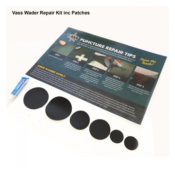 Accidents do happen so it’s good to know there is a Wader repair kit available. The kit patches are made from genuine Vass-Tex materials suitable for repairing your Vass waders.
