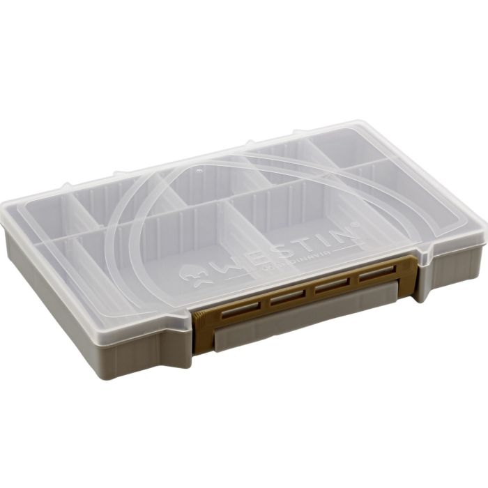Discover our spacious tackle box, crafted from a robust PP material. This box offers ample storage for your fishing essentials. The high-quality lid, while not fully transparent, has a slightly milky finish, striking a balance between visibility and protection. With five versatile compartments you can efficiently organise your lures, terminal tackle, and more. Get ready for your next fishing adventure!