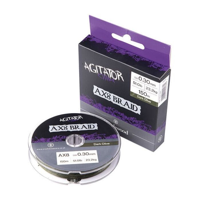 Agitator AX8 is an ultra-high performance coated 8 strand PE braid offering incredible abrasion resistance and unparalleled knot strength.AX8’s unique coating gives a silk like quality, reducing friction for improved casting performance, greater linear strength, and increasing knot strength by as much as 20%, whilst remaining whisper quiet through the rod guides.Its low viz dark mossy green colour and perfectly round profile make it ideal for both the lure and bait angler alike.